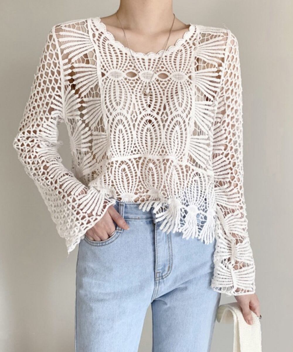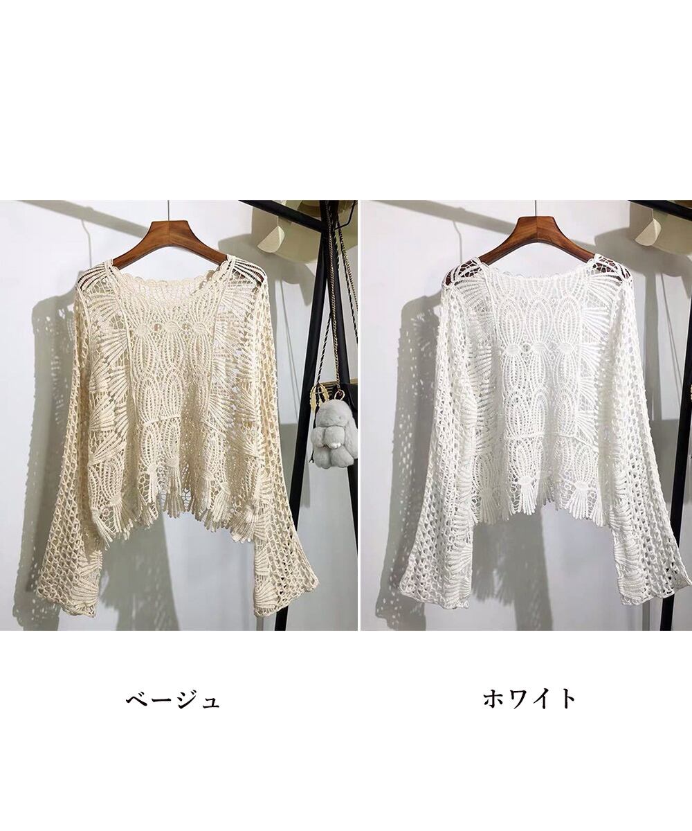 かぎ編みサマーニット 透かし編みトップスは、夏の装いにぴったりな一枚。涼し気な編み模様と軽やかな素材感が、暑い季節にぴったりなアイテムです。