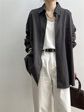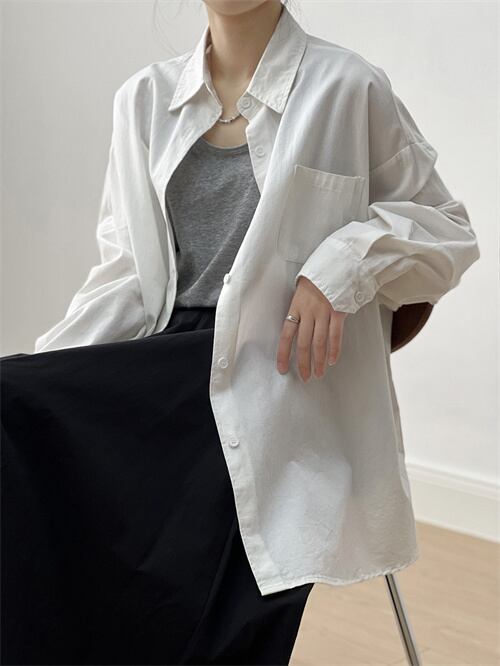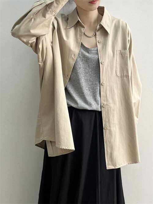 無地のデザインなので、さまざまなスタイルに合わせやすく、着回し力も抜群です。長袖なので、春先や涼しい夜にも活躍してくれる頼れる一着です。3色展開なのでお好みに合わせて選んでいただけます。ボタンを閉めてシャツとして、開けて羽織としても使えるので、様々な場面で活躍してくれます。