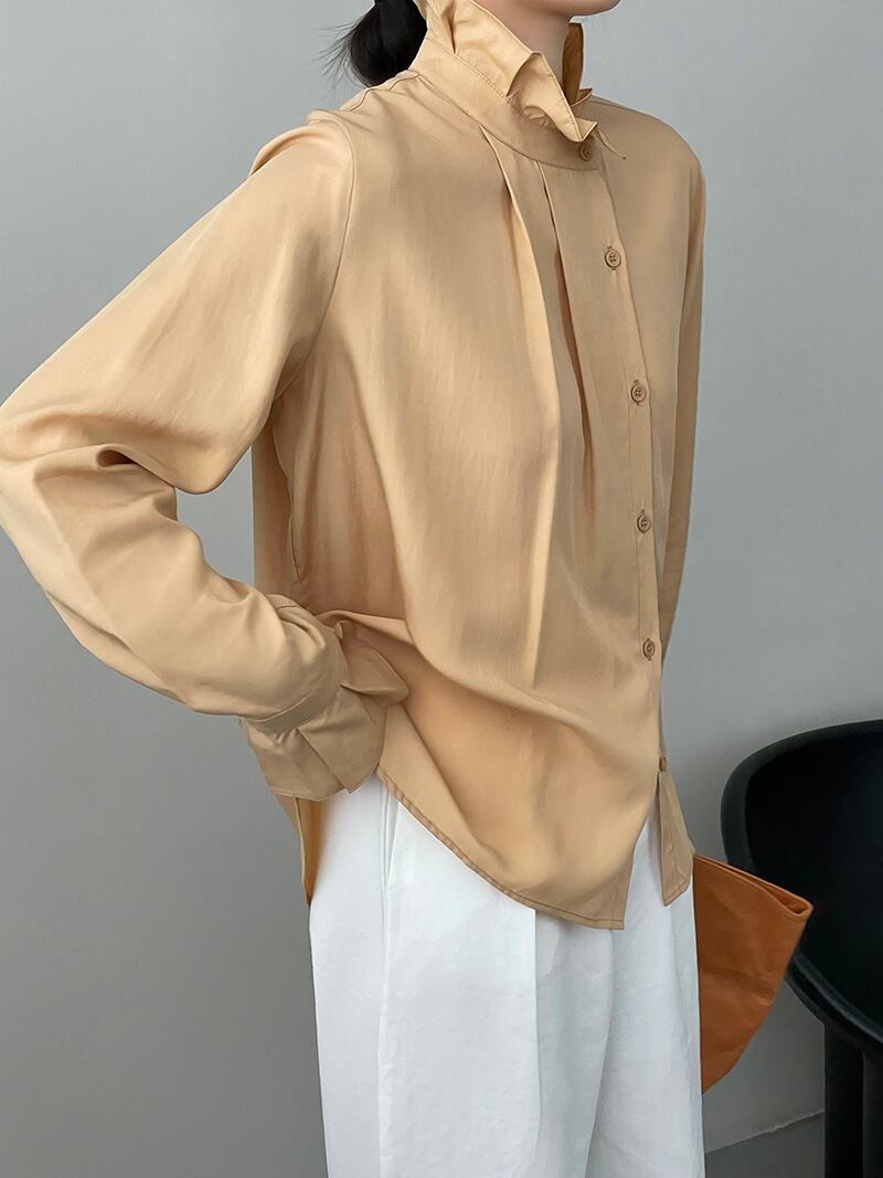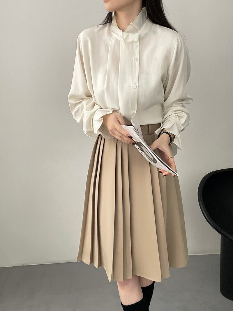 シンプルでありながら、ひとつボタンがアクセントとなり、通勤やオフィススタイルにぴったりな一枚です。襟元がすっきりとしたデザインで、ジャケットとの相性も抜群です。柔らかな素材で着心地も抜群。