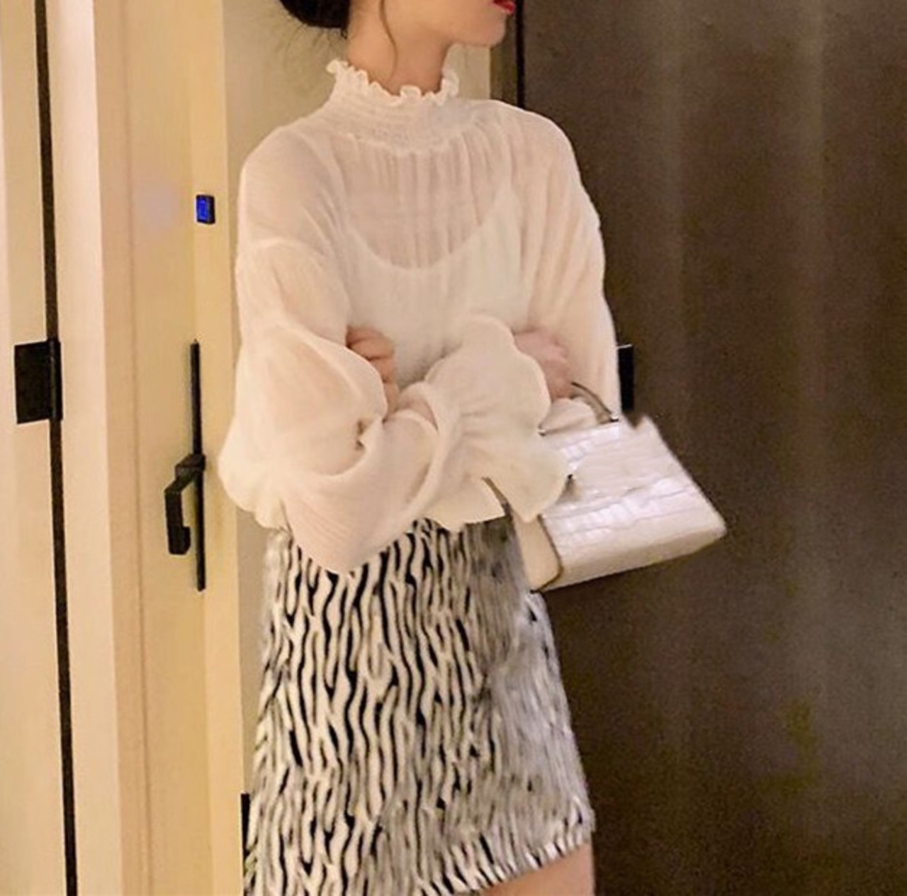 長袖のシャツでありながら、タートルやハイネック、ラウンドネックといったデザインバリエーションも楽しめるのが特徴。さらに、程よい透け感がエレガントな印象を与えます。