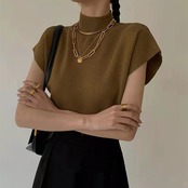 ハーフタートルネックが首元を華やかに演出し、ニットベストならではの軽やかさで着心地も抜群です。様々なスタイリングに合わせやすく、一枚でおしゃれ感をプラスしてくれる優れもの。オフィスカジュアルやデートコーデなど、幅広いシーンで活躍すること間違いなし!