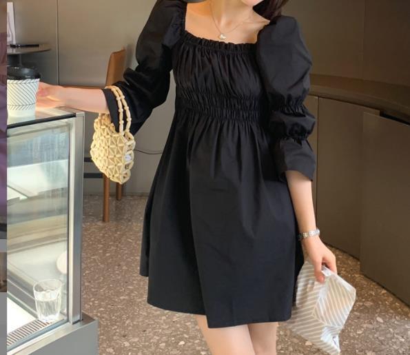 ハイウエストデザインで脚長効果抜群、スカートのフレアラインが女性らしいシルエットを演出します。シンプルな無地デザインなので、アクセサリーや小物使いでコーディネートを楽しむことができます。オフショル、できても肩まで着てもかわいさバツグン!